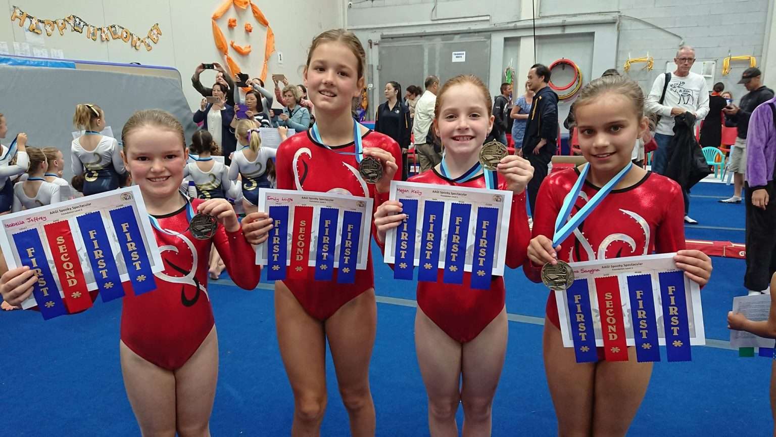 Isabelle, Emily, Megan and Ariana all got gold medals at the friendly comp at AAGI!